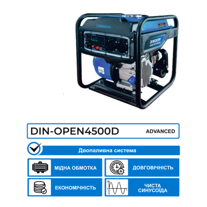 - Товар: Инверторный генератор ZEGOR DIN-OPEN 4500D (Бензин + Газ): 4.0/4.5 кВт
