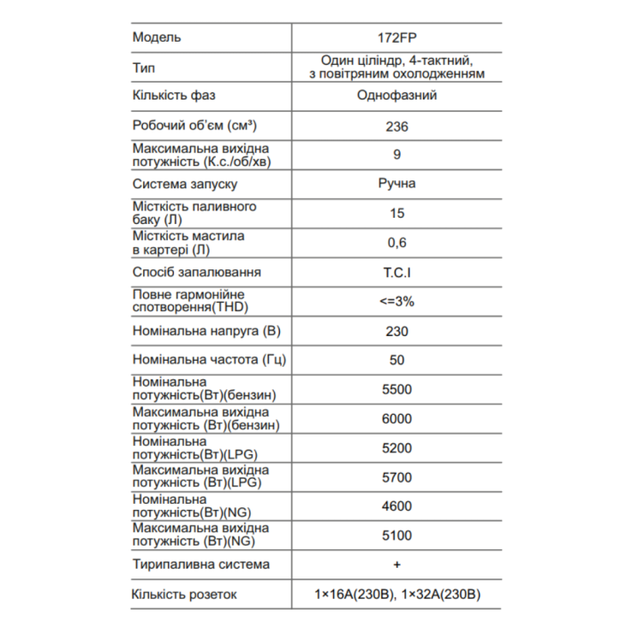 - Тип топлива - бензин, сжиженный газ LPG, природный газ NG